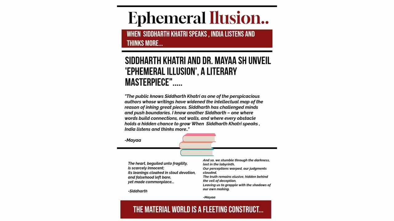 HomeExclusive Brand StorySiddharth Khatri And Dr. Mayaa SH Unveil 'Ephemeral Illusion', A Literary Masterpiece.....